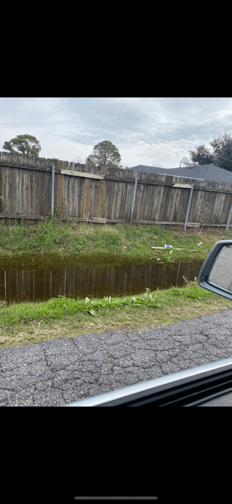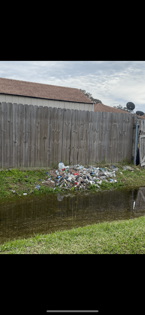 report drainage issues, debris, illegal dumping in new orleans east to NOLA 311. you can either call 311, 504-539-3266, or submit a service request online at nola.gov/311